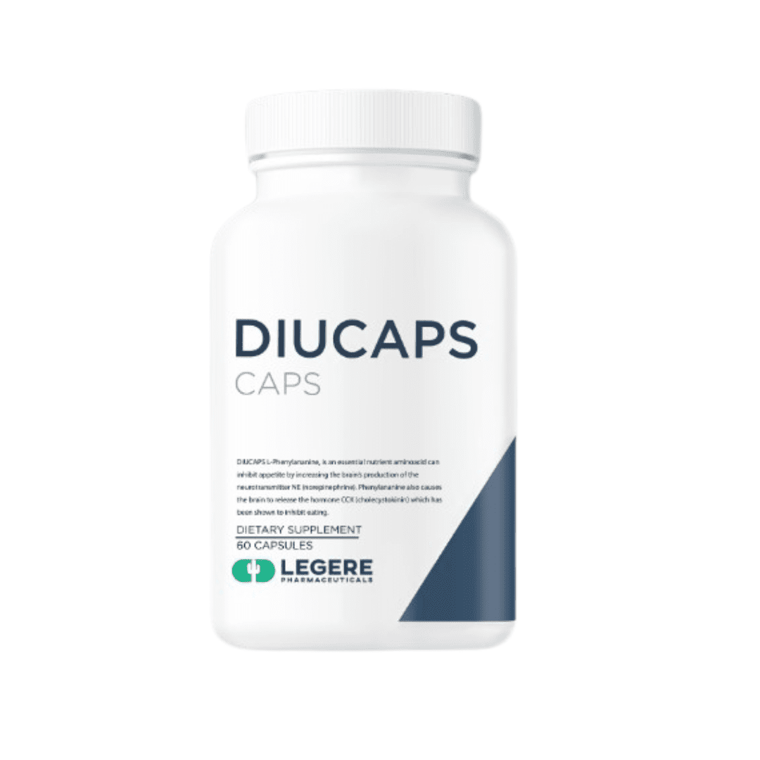 Vitamin B5 Pantothenic Acid 50 mcg : The essential part of coenzyme A, which is required for cellular metabolism. It releases energy from carbohydrates, fats and proteins. As coenzyme, it helps in the utilization of other vitamins.L-Phenylalanine is an essential amino acid that can inhibit appetite by increasing production of the neurotransmitter NE (norepinephrine). Increased levels of NE can enhance fat loss by activating hormone-sensitive lipase, causing rapid break down of triglycerides and mobilizing fatty acids. L-Phenylalanine also causes a release of cholecystokinin (CCK), which has been associated with an increase in satiety resulting in lower caloric intake. Unlike appetite suppressant drugs utilizing controlled stimulants to reduce appetite, DIUCAPS has no undesirable side effects.